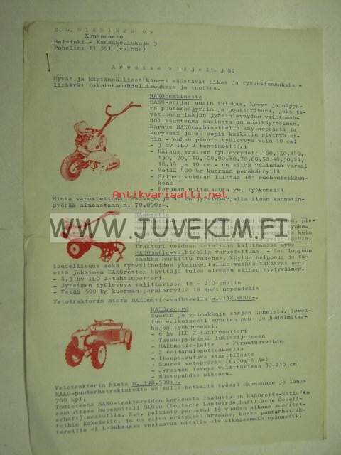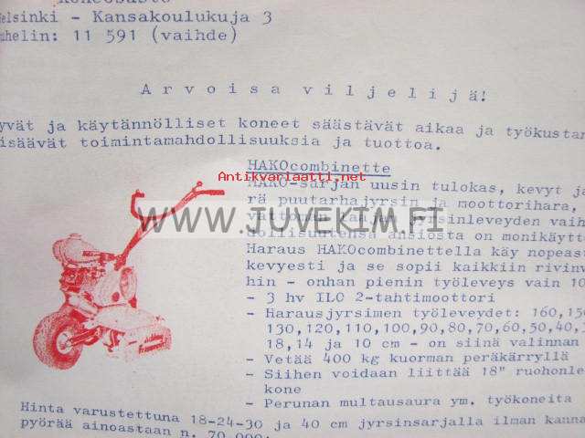 Hako Hakorette, Combinette, Hakorecord puutarhatraktorit -myyntiesite