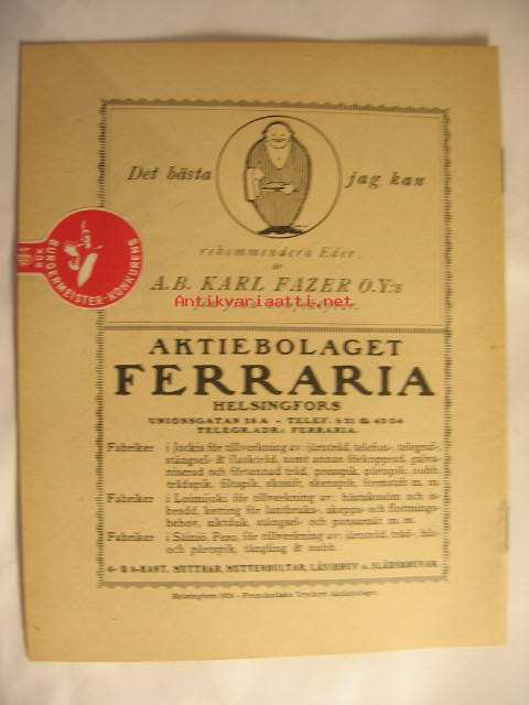 | Saatavilla | 3 kpl | | Julkaisuvuosi | 1924 | | Kunto | K4 | | Kielet | Ruotsi |