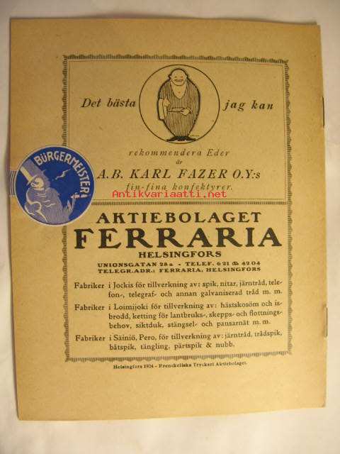 | Saatavilla | 3 kpl | | Julkaisuvuosi | 1924 | | Kunto | K4 | | Kielet | Ruotsi |