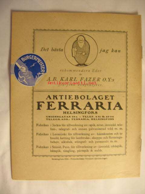 | Saatavilla | 3 kpl | | Julkaisuvuosi | 1924 | | Kunto | K4 | | Kielet | Ruotsi |