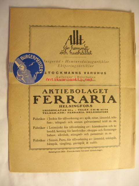 | Saatavilla | 3 kpl | | Julkaisuvuosi | 1924 | | Kunto | K4 | | Kielet | Ruotsi |