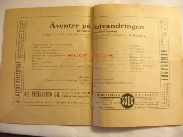 Svenska Teatern Program 1924-25 nr 1 -käsiohjelma