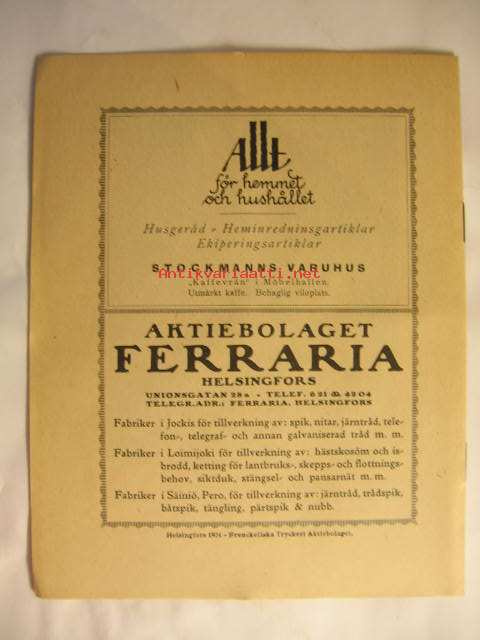 | Saatavilla | 3 kpl | | Julkaisuvuosi | 1923 | | Kunto | K4 | | Kielet | Ruotsi |