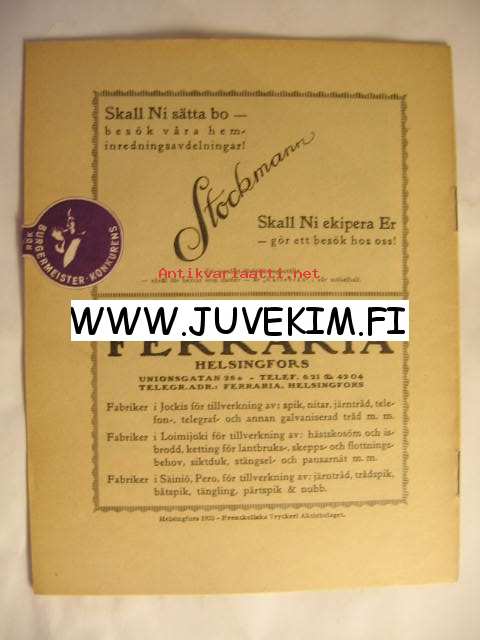 | Saatavilla | 1 kpl | | Julkaisuvuosi | 1923 | | Kunto | K4 | | Kielet | Ruotsi |