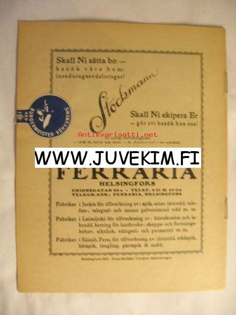 | Saatavilla | 1 kpl | | Julkaisuvuosi | 1923 | | Kunto | K4 | | Kielet | Ruotsi |