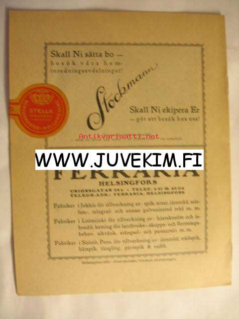 | Saatavilla | 1 kpl | | Julkaisuvuosi | 1923 | | Kunto | K4 | | Kielet | Ruotsi |