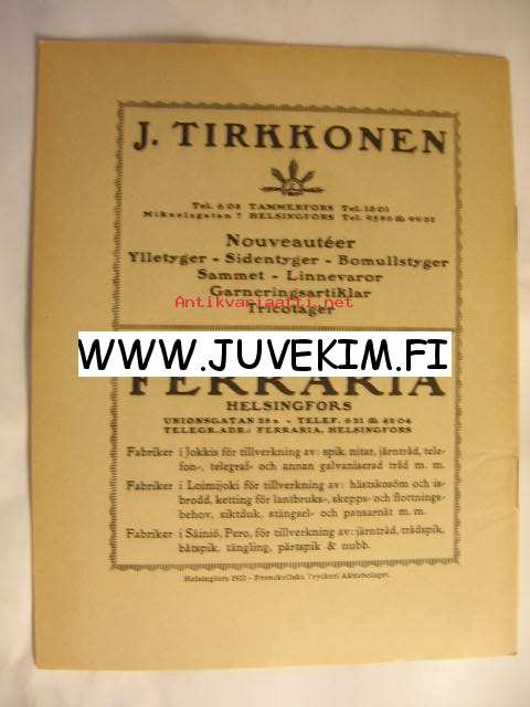 | Saatavilla | 1 kpl | | Julkaisuvuosi | 1922 | | Kunto | K4 | | Kielet | Ruotsi |