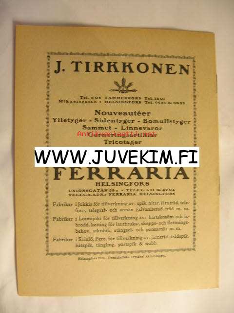 | Saatavilla | 1 kpl | | Julkaisuvuosi | 1922 | | Kunto | K4 | | Kielet | Ruotsi |