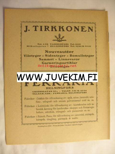 | Saatavilla | 1 kpl | | Julkaisuvuosi | 1922 | | Kunto | K4 | | Kielet | Ruotsi |