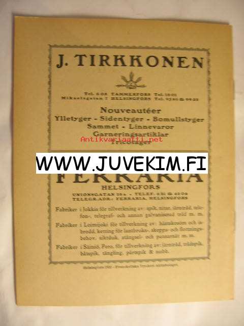 | Saatavilla | 1 kpl | | Julkaisuvuosi | 1921 | | Kunto | K4 | | Kielet | Ruotsi |