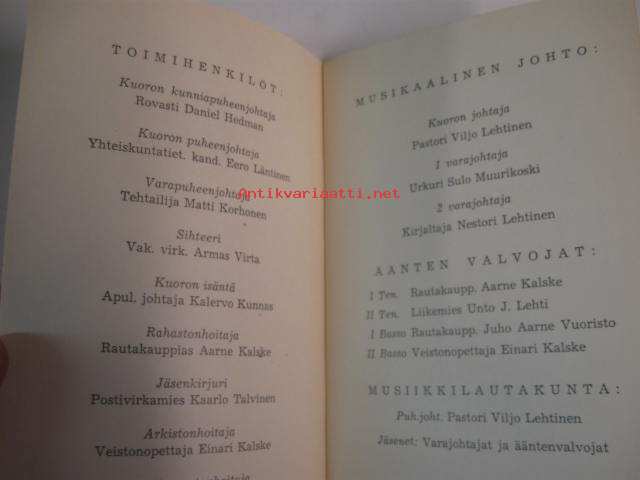 | Saatavilla | 1 kpl | | Julkaisuvuosi | 19 | | Sivuja | 8 | | Kunto | K4 | | Kielet | Suomi |