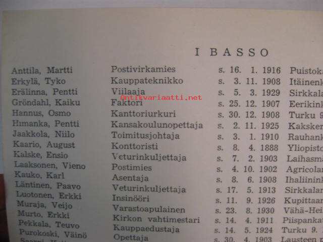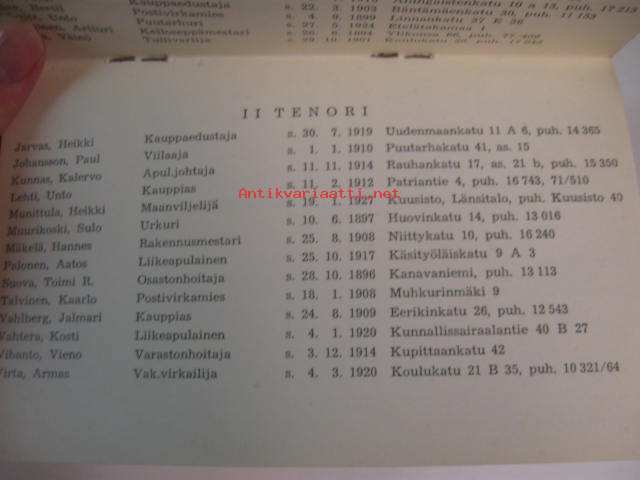 Turun NMKY:n mieskuoron jäsenluettelo 1952