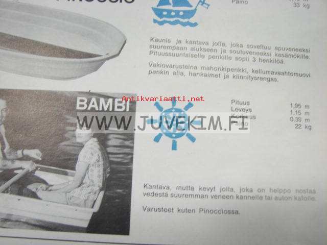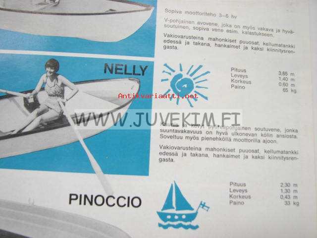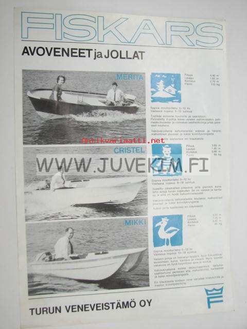 Fiskars avoveneet ja jollat Criste, Merita, Mikki, Venetta, Nelly, Pinoccio, Bambi -myyntiesite