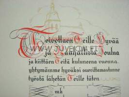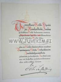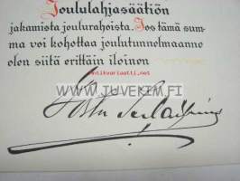 Vuorineuvos Gösta Serlachius`en Joululahjasäätiö, 1922 x 28 cm lahjakirja, käyttämätön, painettu nimikirjoitus.