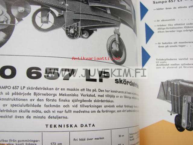 SAMPO 657 LP skördetröska 1961 -broschyr på svenska - myyntiesite, ruotsinkielinen