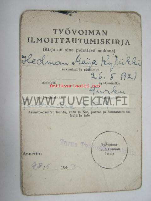 Työvoiman ilmoittautumiskirja Maija Hedman