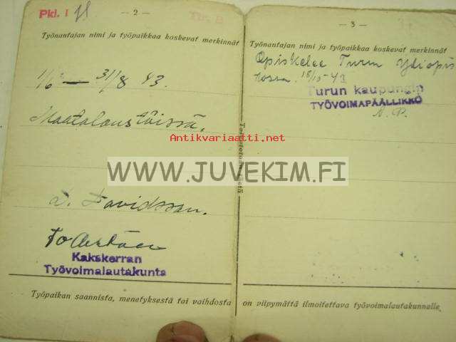 | Saatavilla | 1 kpl | | Julkaisuvuosi | 1943 | | Kunto | K3 | | Kielet | Suomi |