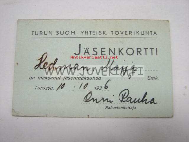Turun Suomalaisen Yhteiskoulun toverikunta Maija Hedman -jäsenkortti