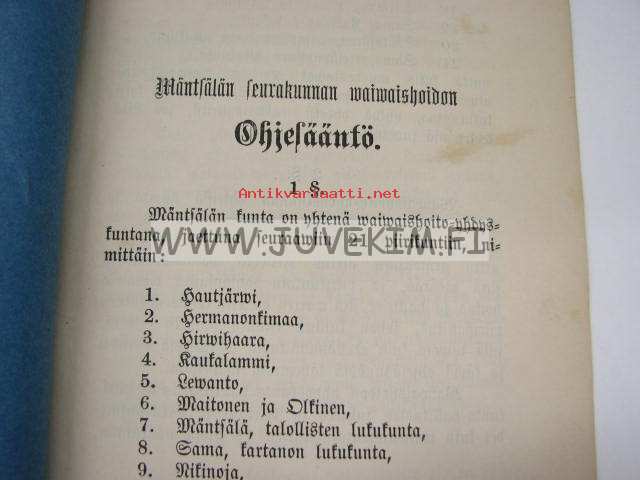 Mäntsälän Seurakunnan Waiwaishoidon Ohjesääntö 1887