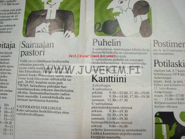 | Saatavilla | 1 kpl | | Julkaisuvuosi | 1974 | | Sivuja | 14 | | Kunto | K2 | | Kielet | Suomi |