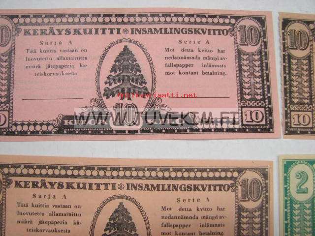 Paperinkeräys -keräyskuitteja