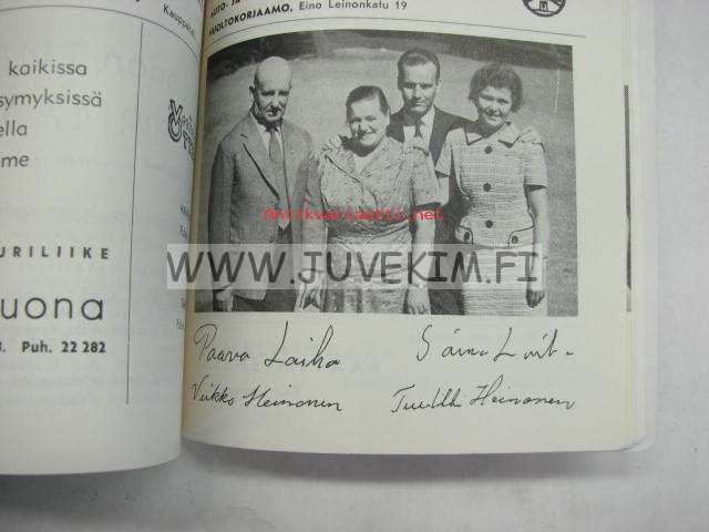 | Saatavilla | 1 kpl | | Julkaisuvuosi | 1962 | | Kunto | K3 | | Kielet | Suomi |