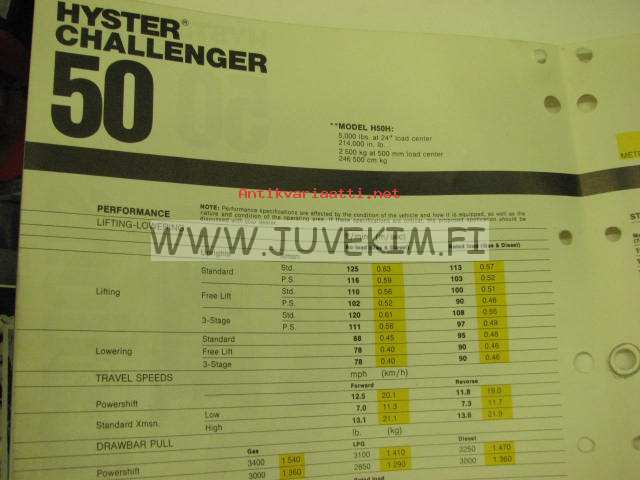 Hyster Challenger 50 Specifications -myyntiesite englanniksi