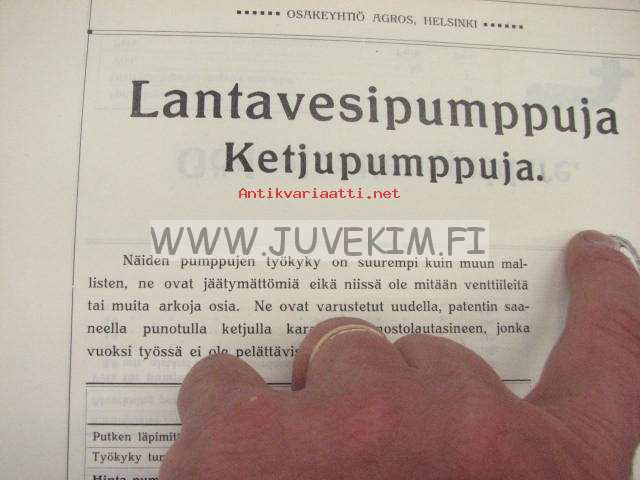 Lantavesipumppuja, ketjupumppuja -Agros Oy myyntiesite