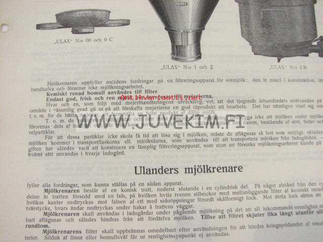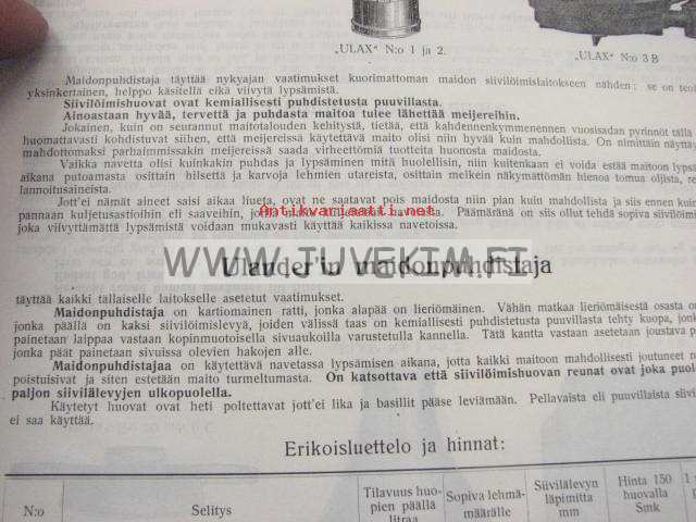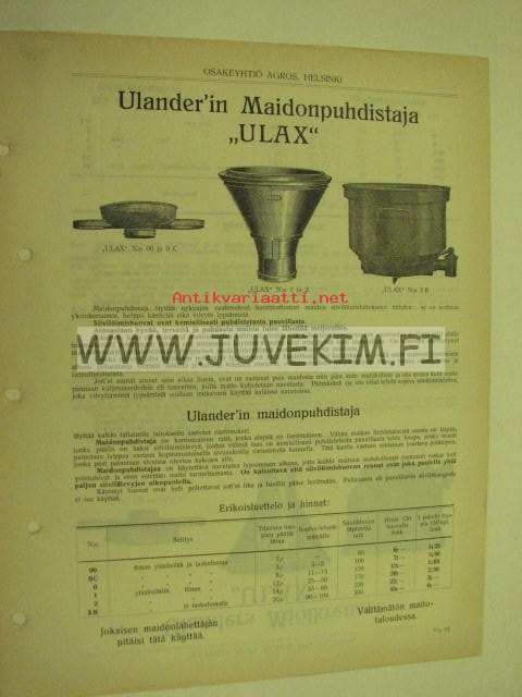 Ulanderin maidonpuhdistaja "ULAX" -Agros Oy myyntiesite