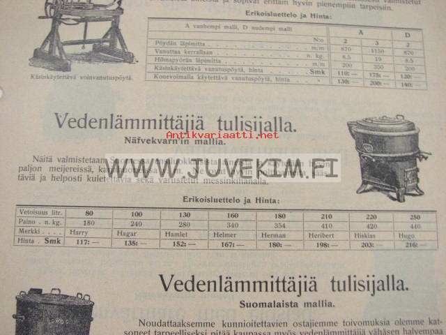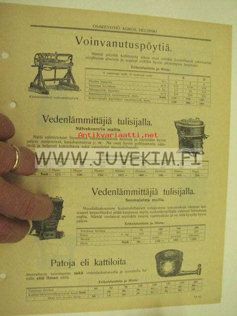 Voinvanutuspöytiä, vedenlämmittäjiä -Agros Oy myyntiesite