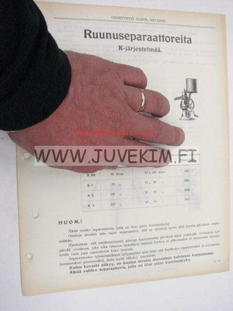 Ruunuseparaattoreita K-järjestelmää -Agros Oy myyntiesite