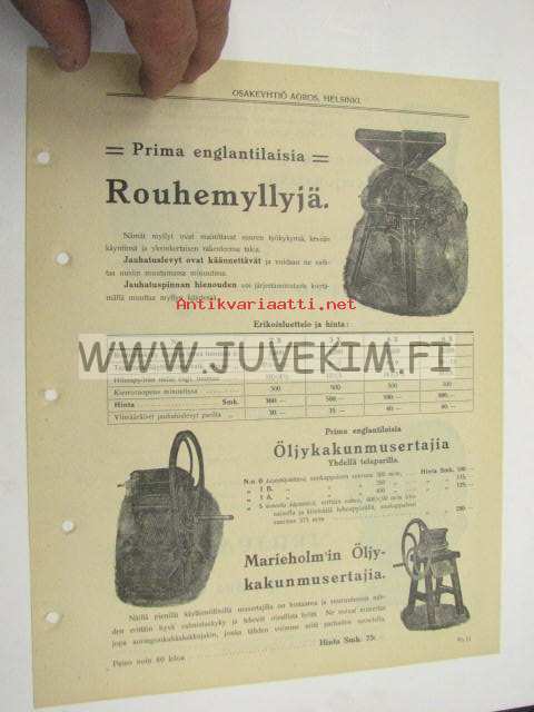 Rouhemyllyjä, öljykakunmurentajia -Agros Oy myyntiesite
