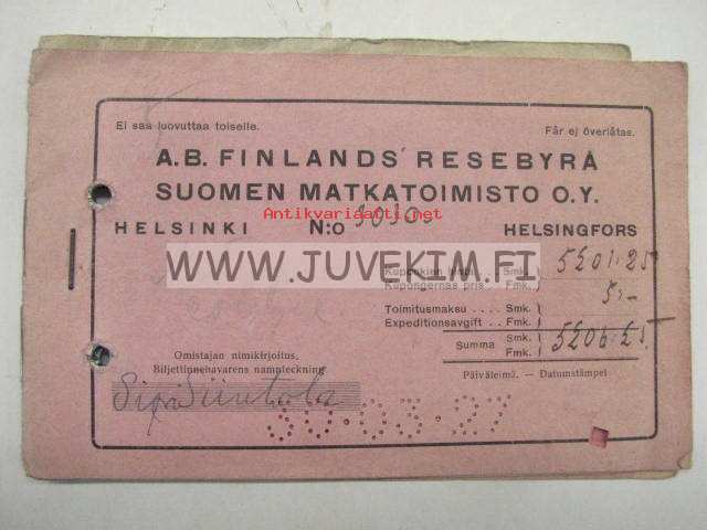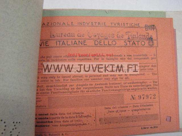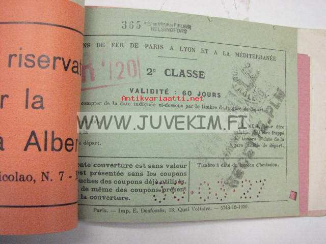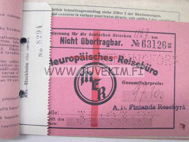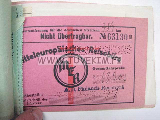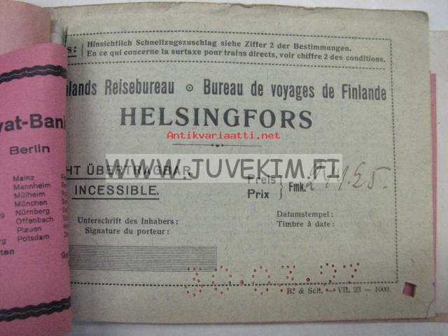 Suomen Matkatoimisto Oy -rautatielippuvihko Eurooppa 1927