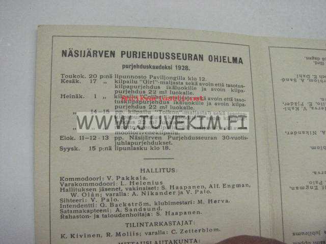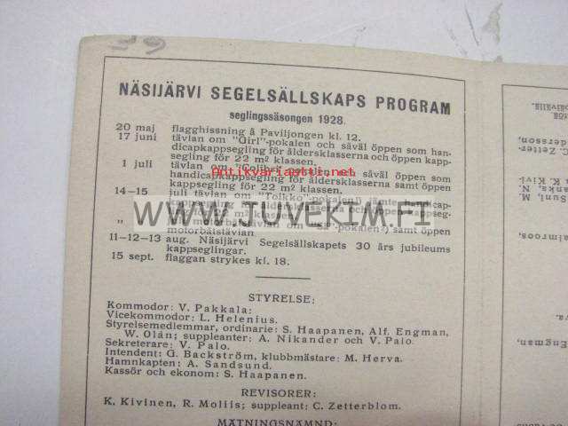 Näsijärven Purjehdusseura 1928 -ohjelma / Näsijärvi Segelsällkaps program