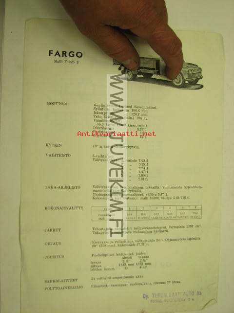 Fargo F 225 Y kuorma-auto -myyntiesite