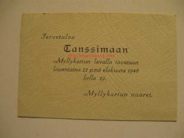 Tervetuloa tanssimaan Myllykartun lavalle 21.8.1948 Myllykartun nuoret