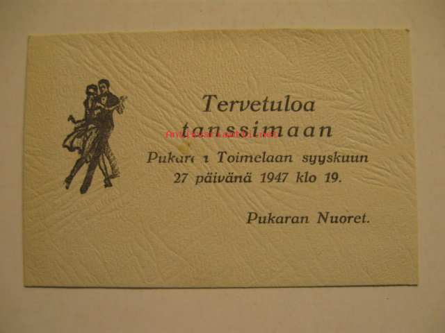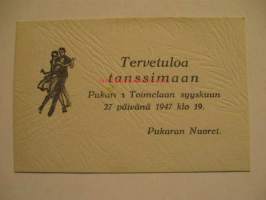 Tervetuloa tanssimaan Pukaran Toimelaan 27.9.1947 Pukaran nuoret