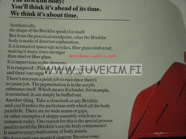 Bricklin Vehicle Corporation, 1930 x 30 cm myyntiesite.