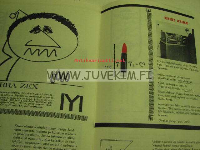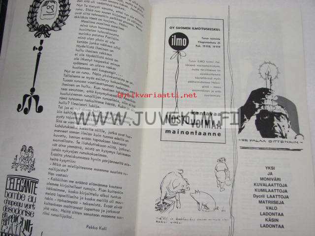 | Saatavilla | 1 kpl | | Julkaisuvuosi | 1963 | | Sivuja | 52 | | Kunto | K3 | | Kielet | Suomi |