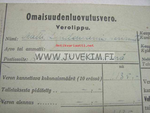 Omaisuudenluovutusvero Verolippu Matti Lindemanin perikunta, Lokalahti