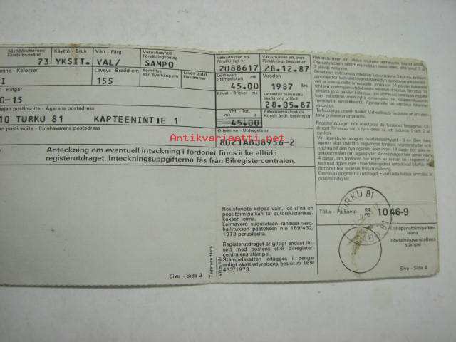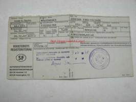 Autorekisterikeskus, 198710 x 20 cm alkuperäinen rekisteriote.