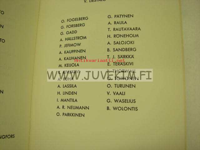 | Saatavilla | 1 kpl | | Julkaisuvuosi | 1935 | | Kunto | K4 | | Kielet | Suomi |