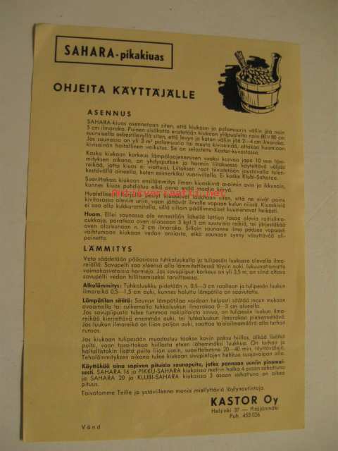 Kastor Oy, 1914 x 20 cm myyntiesite.