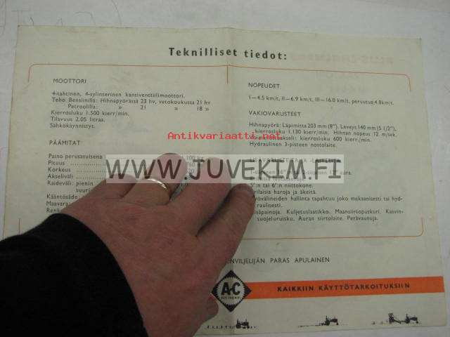 | Saatavilla | 1 kpl | | Julkaisuvuosi | 19 | | Sivuja | 2 | | Kunto | K3 | | Kielet | Suomi |