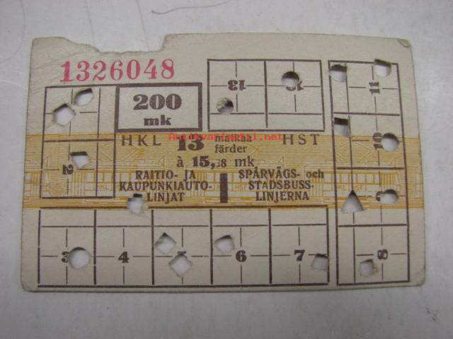 HKL / HST Raitio- ja kaupunkilinja-autot 200 mk 13 matkaa á 15,38 mk -matkalippu