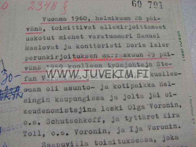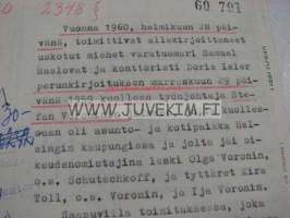 Perunkirjoitus työnjohtaja Stefan Voronin Helsinki 1959 -asiakirjat