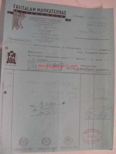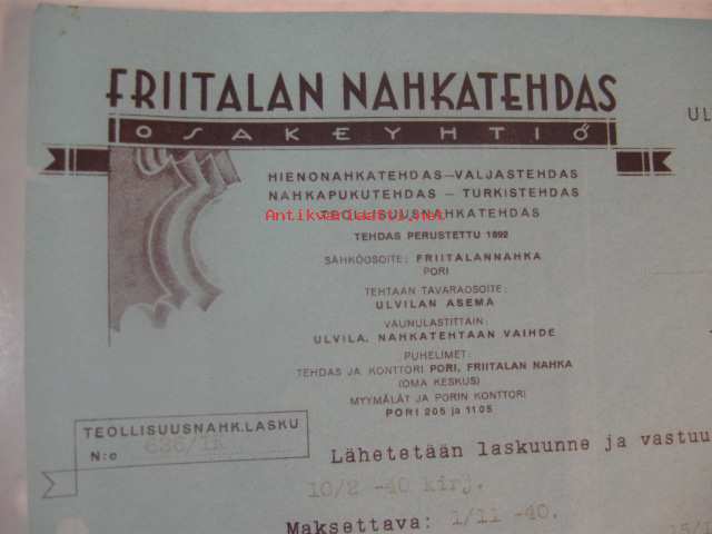 Friitalan nahkatehdas 1.10.1940 -asiakirja