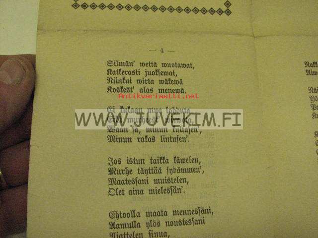 | Saatavilla | 1 kpl | | Julkaisuvuosi | 19 | | Kunto | K3 | | Kielet | Suomi |
