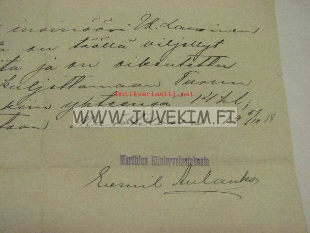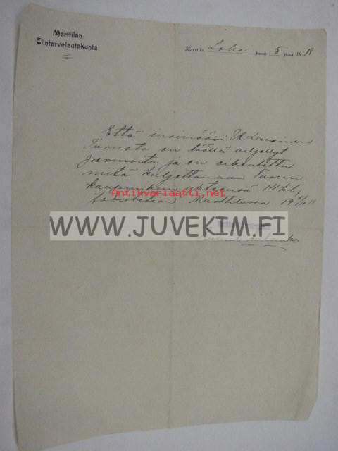 Marttilan Elintarvikelautakunta 5.10.1918 -asiakirja
