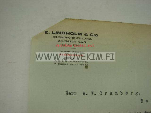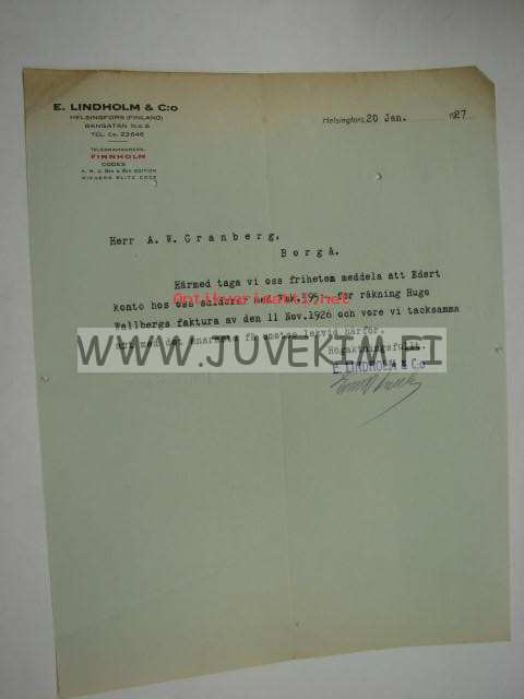 E. Lindholm & Co, Helsinki 20.1.1927 -asiakirja